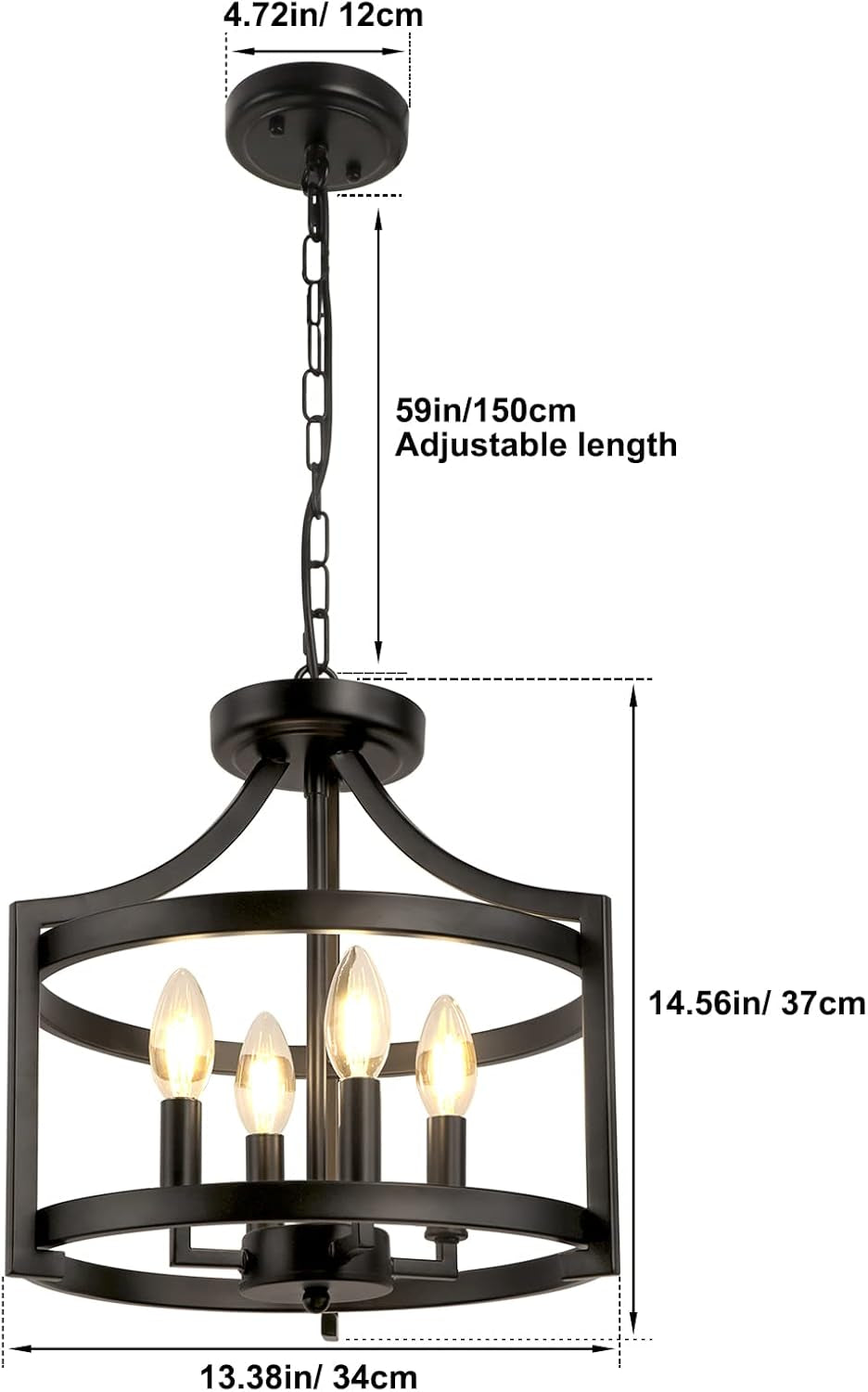 Elevate your home decor with our Rustic 4-Light Black Chandelier, a perfect blend of modern farmhouse style and rustic charm. This versatile chandelier is designed with a simple yet elegant open-cage frame featuring a matte black finish, making it an ideal lighting solution for a variety of spaces.