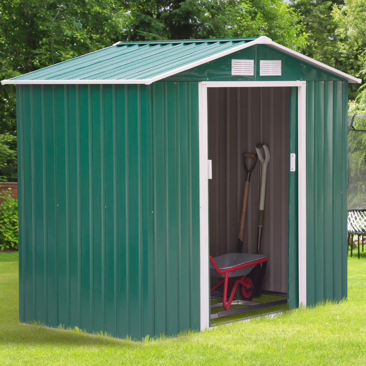 Outsunny 7'Lx4'Wx6'H Garden Storage Shed w/ Floor Outdoor Patio Yard Metal Tool Storage House Green