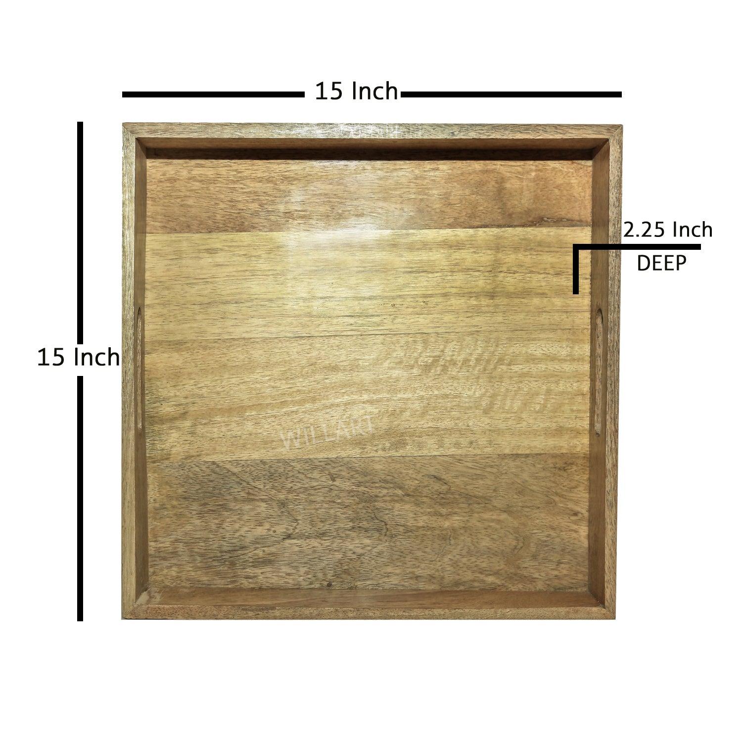 - Handade Designer FOOD TRAY: Handmade Mango wood tray ideal for serving tea, cocktails, and appetizers. It's handmade laser design on the borders of tray makes it more beautiful and elegant.